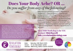 RESTORE your health, vitality and wellbeing. In this beautiful and gentle workshop where you learn a process to bring the body/mind/spirit into a state of balance and harmony. Our health and wellness is influenced by so many aspects of our Being. Your instructor, Nikki Barrett teaches about the key roles the jaw and sphenoid bone […]